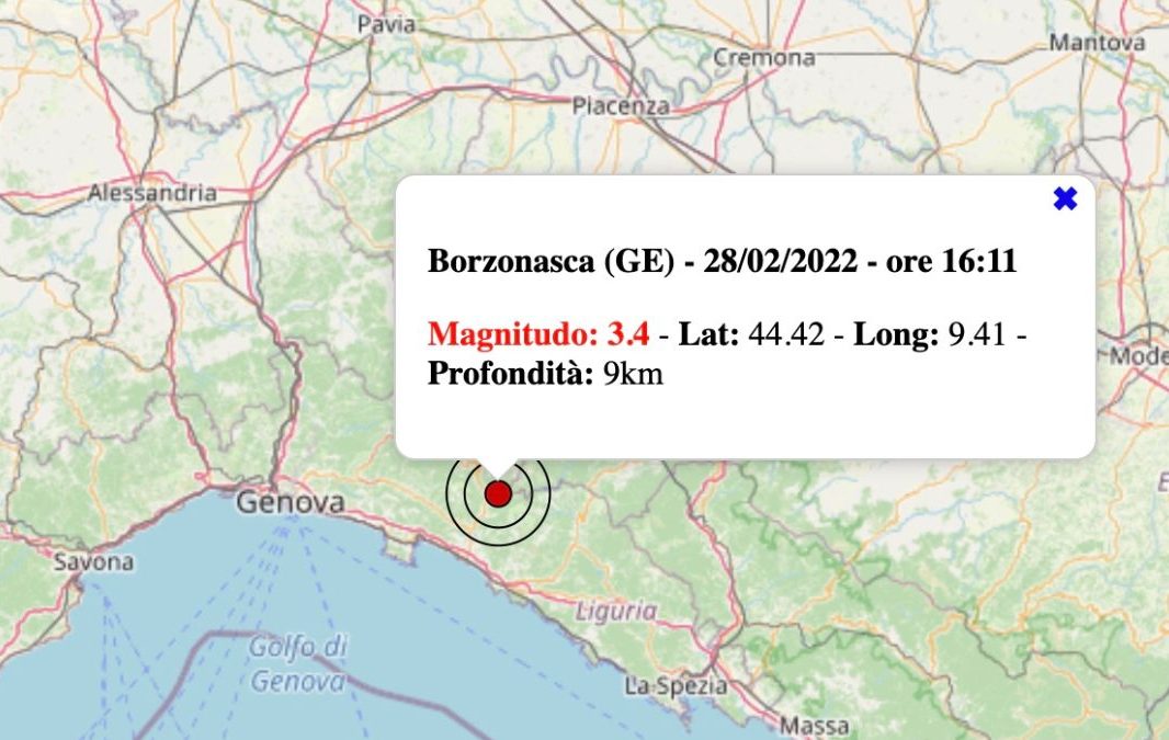 Terremoto In Liguria Oggi Lunedi 28 Febbraio 2022 Scossa M 3 4 In Provincia Di Genova Dati Ingv